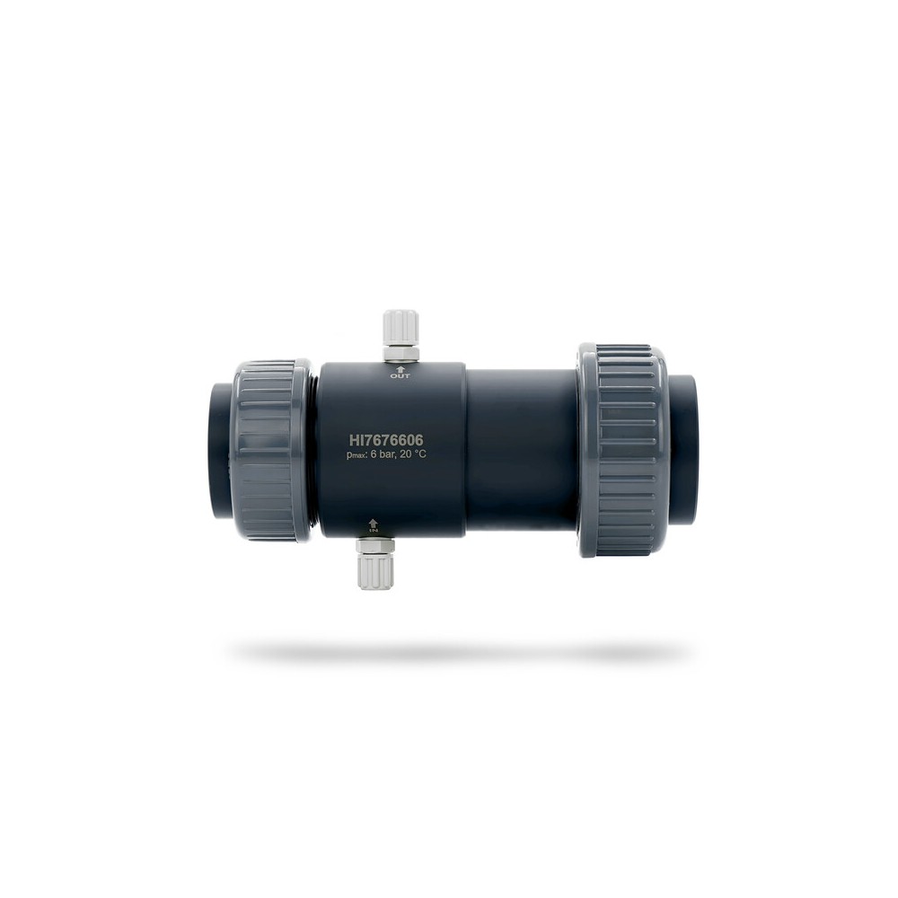 Cámaras de flujo HI7676602 (menor a 40 NTU) y HI7676606 (mayor a 40 NTU) para la sonda digital de turbidez HI7660 diseñadas para su uso con los controladores de procesos universales HI510 o HI520
